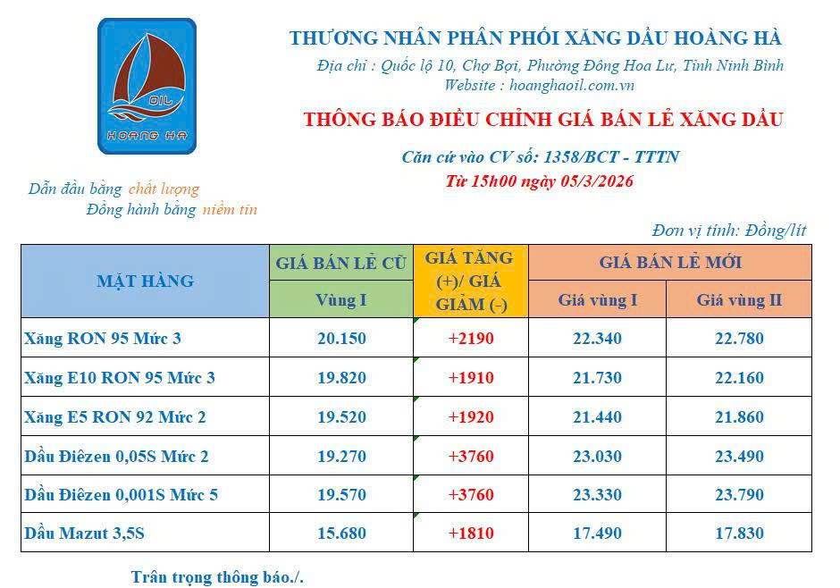 Trang chủ / ĐIỀU CHỈNH GIÁ BÁN LẺ XĂNG DẦU 05 – 03 – 2026