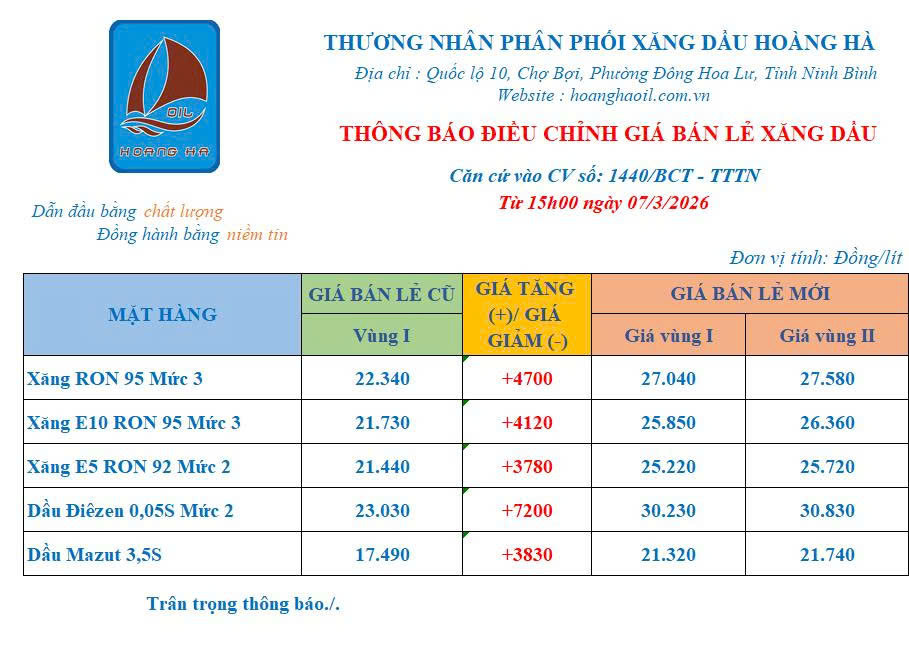 Trang chủ / ĐIỀU CHỈNH GIÁ BÁN LẺ XĂNG DẦU 07 – 03 – 2026