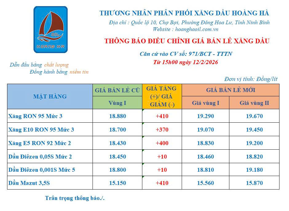 Trang chủ / ĐIỀU CHỈNH GIÁ BÁN LẺ XĂNG DẦU 12 – 02 – 2026