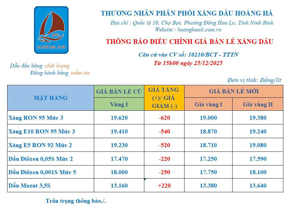 Trang chủ / ĐIỀU CHỈNH GIÁ BÁN LẺ XĂNG DẦU 25 – 12 – 2025