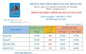 ĐIỀU CHỈNH GIÁ BÁN LẺ XĂNG DẦU : 26-12-2024
