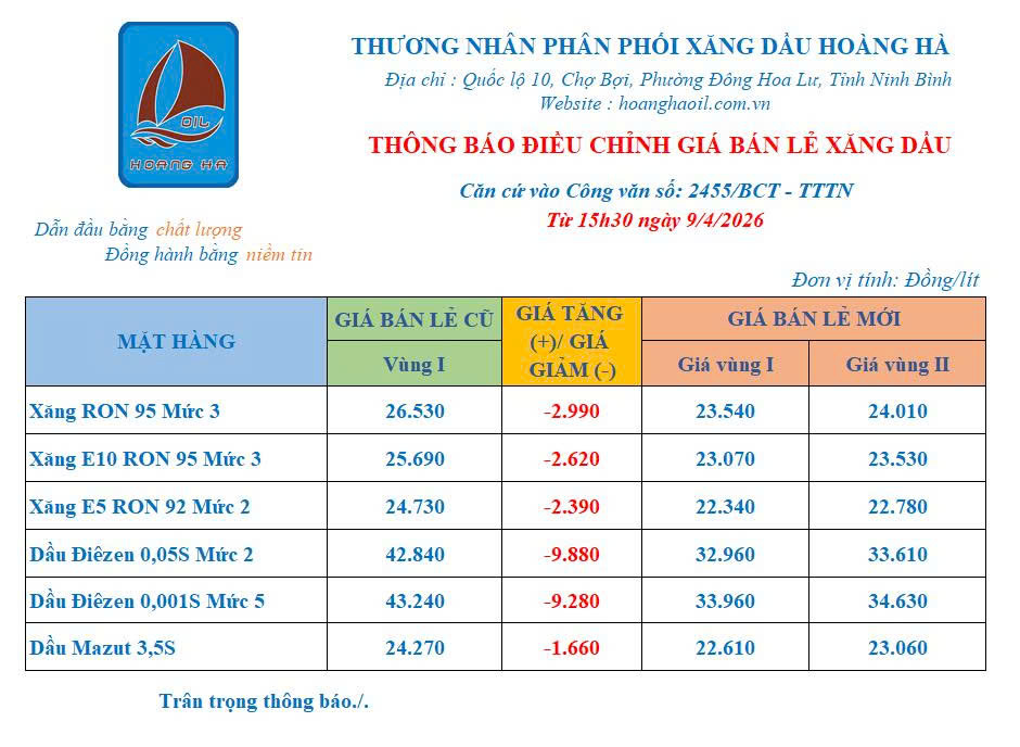Trang chủ / ĐIỀU CHỈNH GIÁ BÁN LẺ XĂNG DẦU NGÀY 09 – 04 – 2026