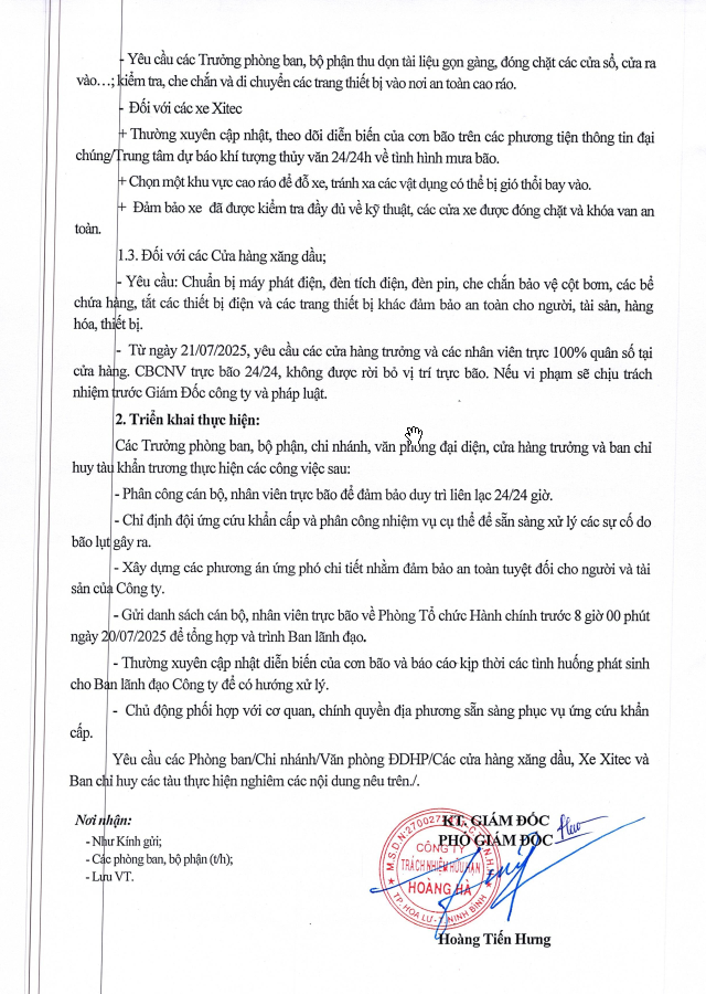 Kính gửi: Các phòng ban, Chi nhánh, VPĐDHP, các CHXD;