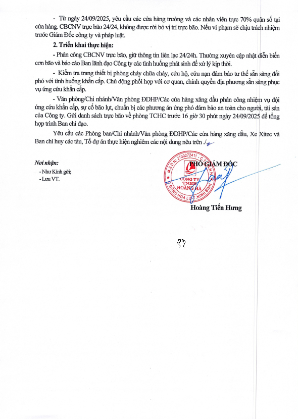 Kính gửi: Các phòng ban, Chi nhánh, VPĐDHP, các CHXD;
