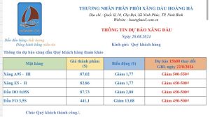 THÔNG TIN DỰ BÁO XĂNG DẦU : 21/08/2024